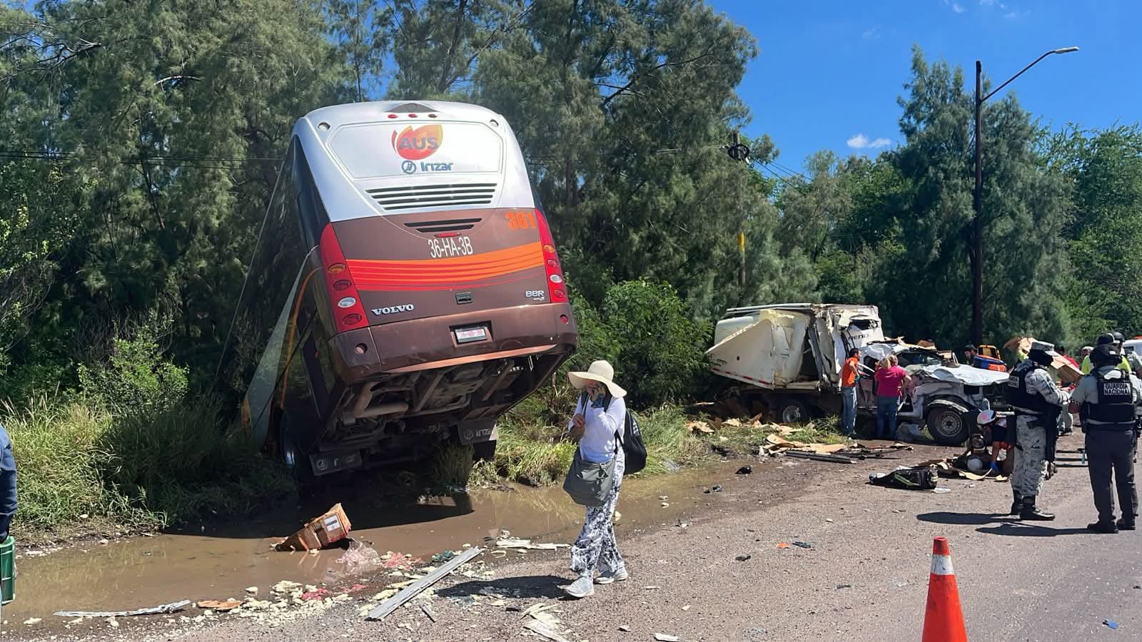 Autobús y camioneta chocan en la maxista Mazatlán-Culiacán