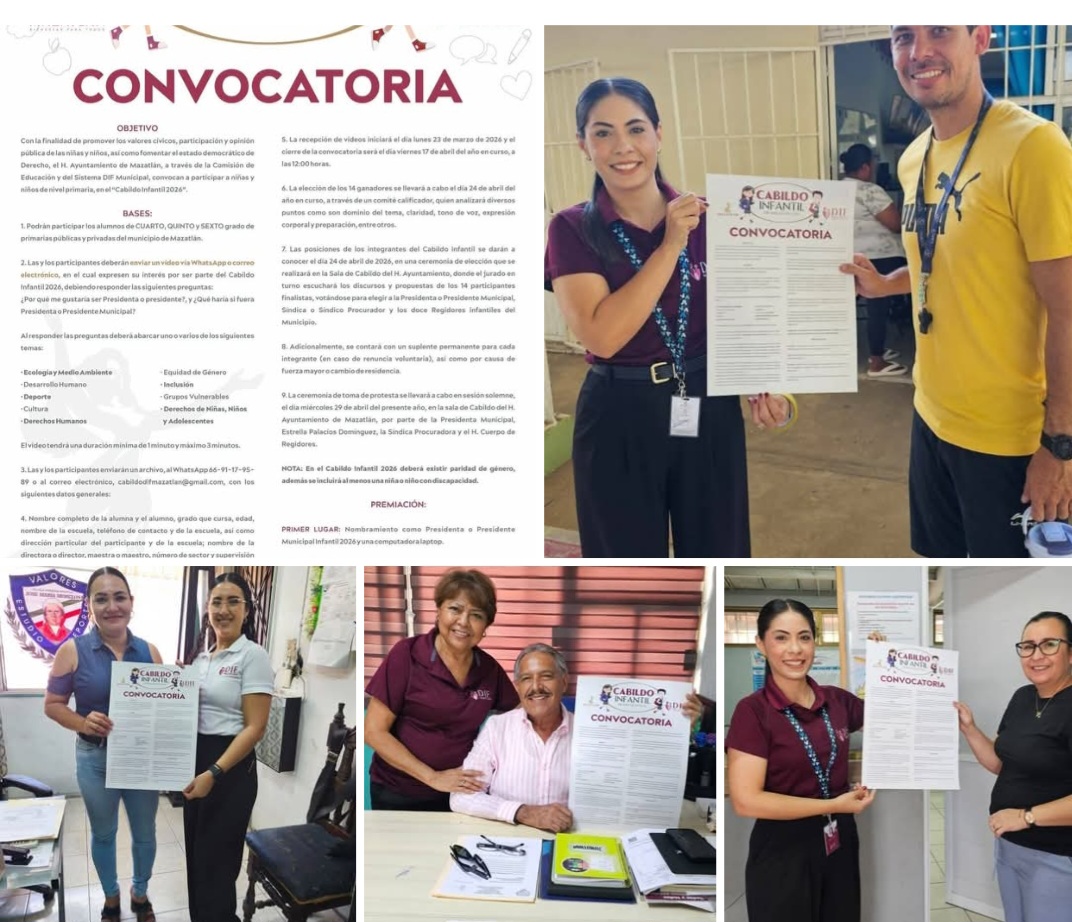 El Sistema DIF Mazatlán continúa llevando la convocatoria del #CabildoInfantil2026 a diferentes escuelas primarias del puerto, acercando esta gran oportunidad a niñas y niños.
