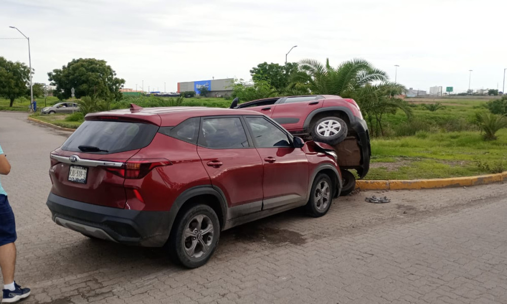 También refieren que hay personas que requieren atención médica Mazatlán, Sinaloa.- Un automóvil de color azul, con la parte delantera dañada y las bolsas de aire...