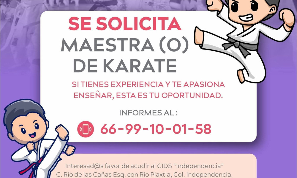El Sistema DIF Mazatlán, a través de su CDIS Independencia, busca un(a) profesional apasionado(a) por enseñar Karate y formar campeones y campeonas dentro y fuera del...
