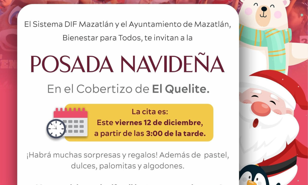 El Sistema DIF Mazatlán y el Gobierno Municipal de Mazatlán, Bienestar para Todos, te invitan a disfrutar de una gran Posada Navideña llena de alegría, sorpresas...