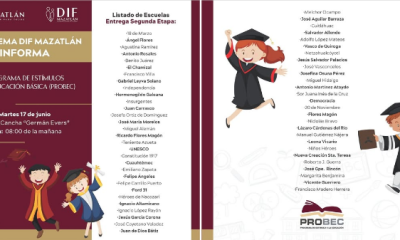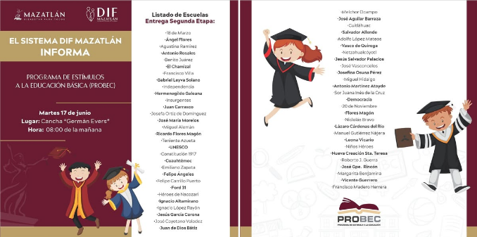 Sistema DIF Mazatlán realizará este martes 17 de junio el pago de la segunda etapa del programa PROBEC para niñas y niños de primaria Corresponde al...
