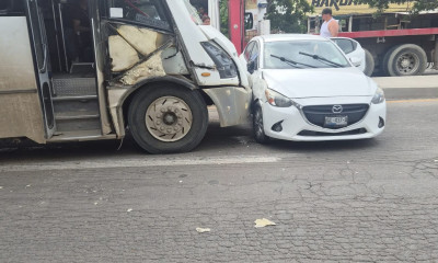 Protección civil y seguridad pública, se movilizaron al lugar, para realizar la remoción de las unidades Mazatlán, Sinaloa.- La colisión entre un transporte público y un...