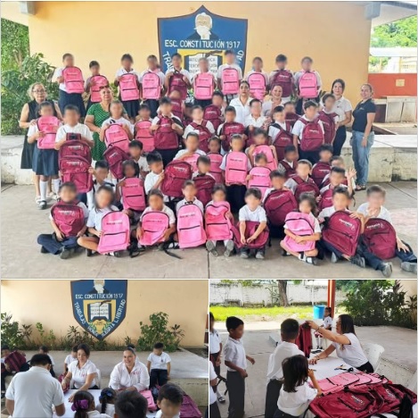 Niñas y niños de zonas urbanas reciben mochilas como parte del apoyo enviado por la Presidenta Municipal Estrella Palacios.